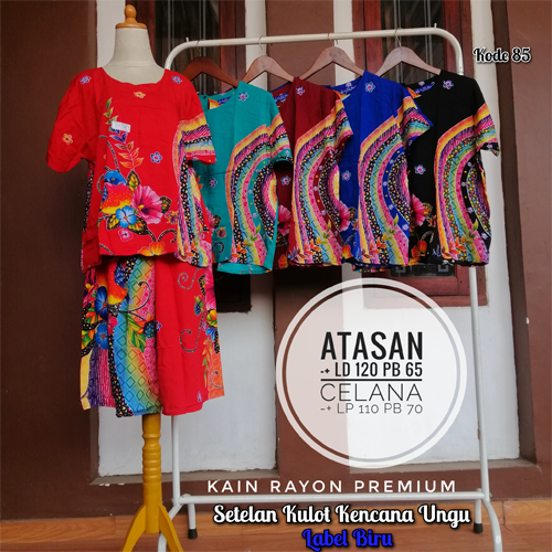 Setelan kulot kencana ungu kode 85 label biru pekalongan,untuk keterangan ukuran ada bada gambarnya ya kak?