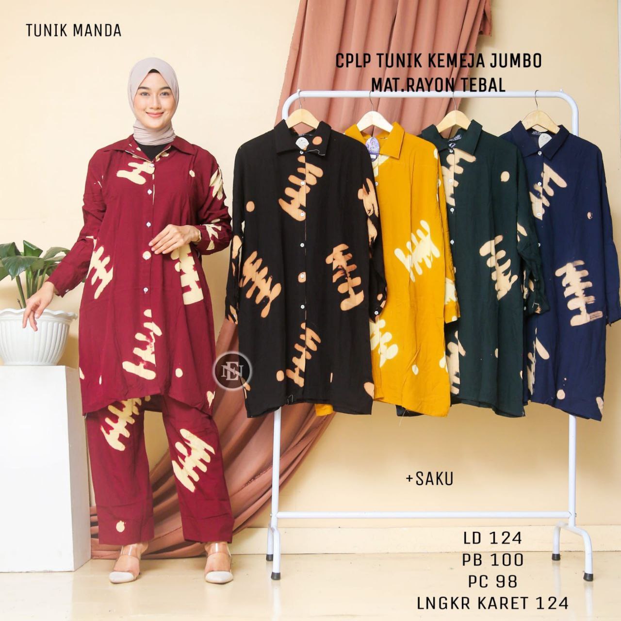Setelan cp lp tunik kemeja jumbo pekalongan,untuk keterangan ukuran ada bada gambarnya ya kak?