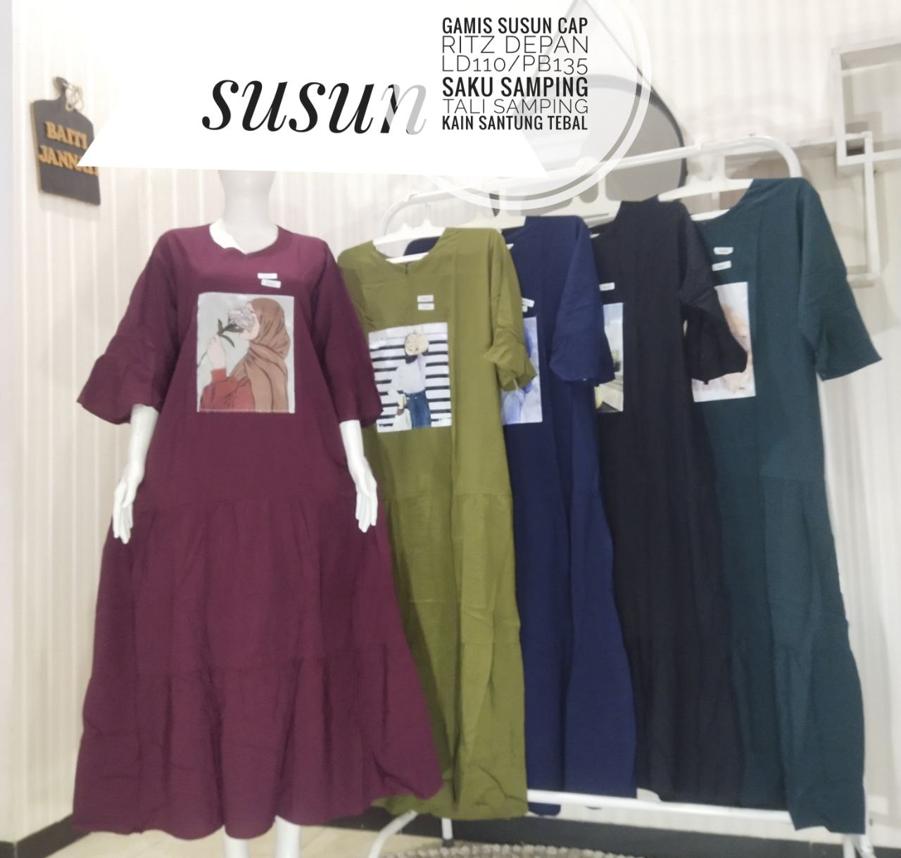 Gamis susun kekinian pekalongan,untuk keterangan ukuran ada bada gambarnya ya kak?