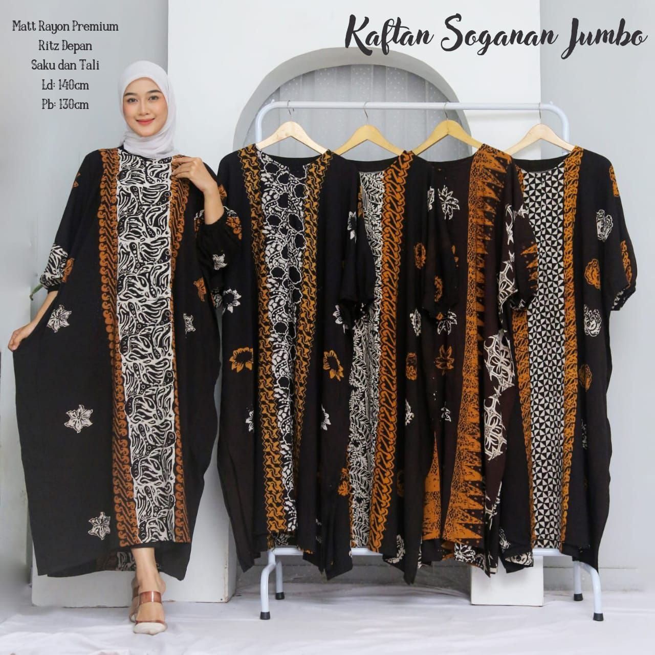 Kaftan soganan jumbo cap pekalongan,untuk keterangan ukuran ada bada gambarnya ya kak?