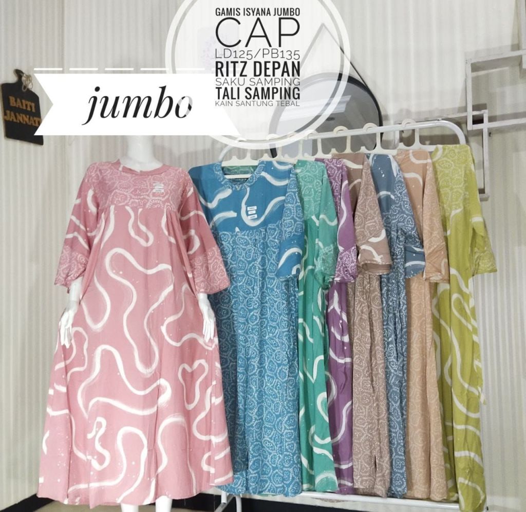 Gamis isyana jumbo cap pekalongan,untuk keterangan ukuran ada bada gambarnya ya kak?