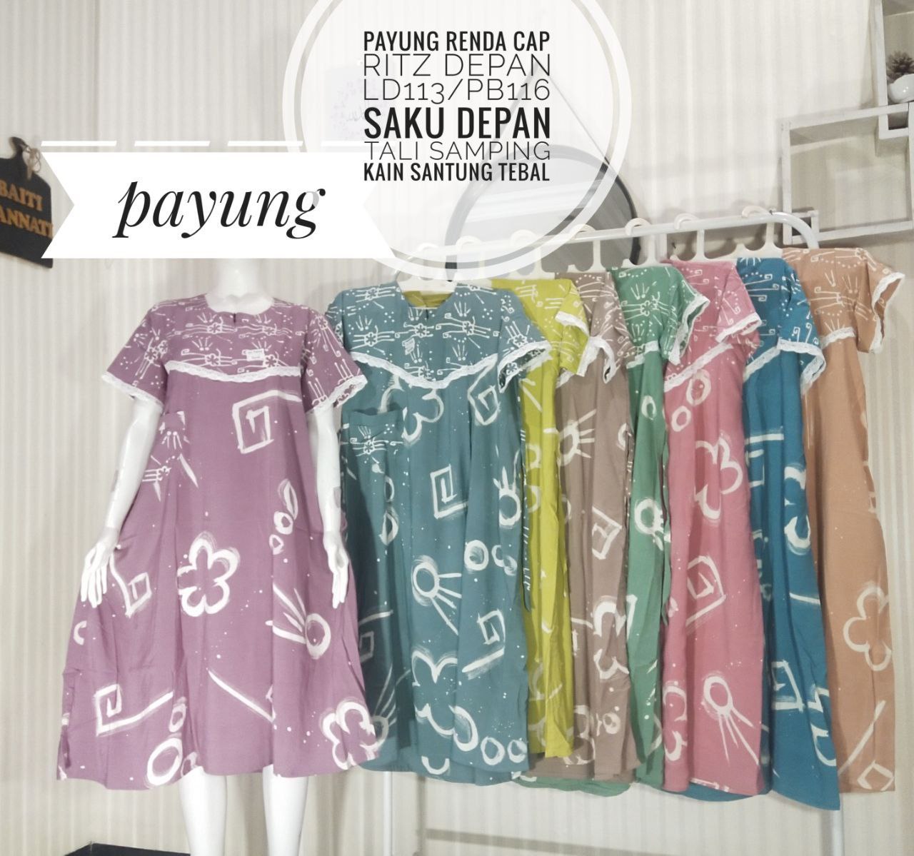 Daster payung renda cap pekalongan,untuk keterangan ukuran ada bada gambarnya ya kak?