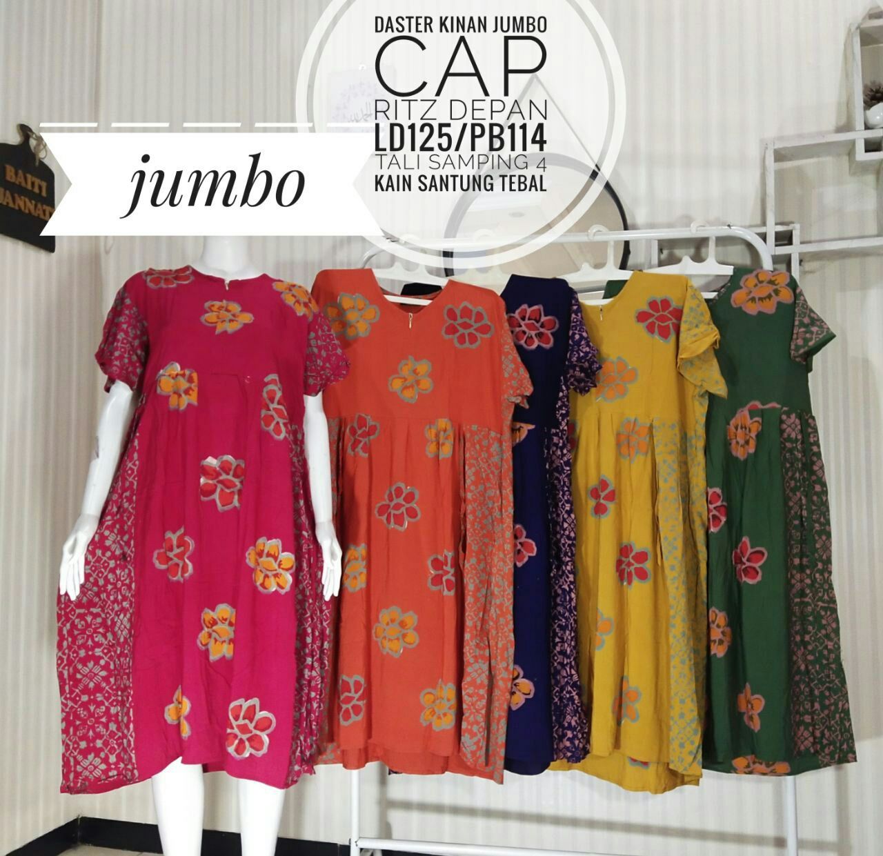 Daster kekinian jumbo cap pekalongan,untuk keterangan ukuran ada bada gambarnya ya kak?