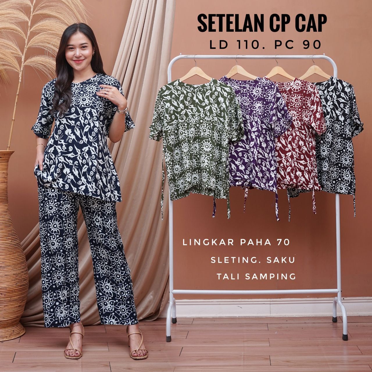 Setelan  cp cap pekalongan,untuk keterangan ukuran ada bada gambarnya ya kak?