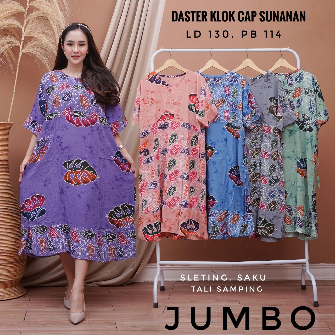 Daster klok cap sunan pekalongan,untuk keterangan ukuran ada bada gambarnya ya kak?