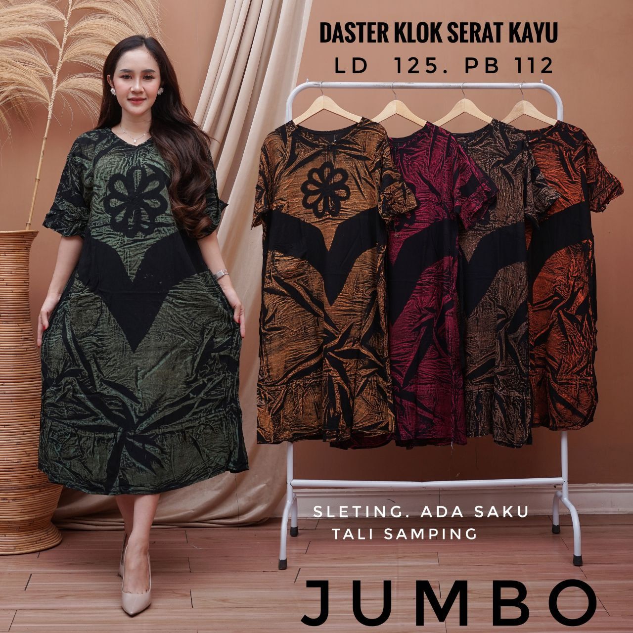 Daster jumbo klok serat kayu pekalongan,untuk keterangan ukuran ada bada gambarnya ya kak?