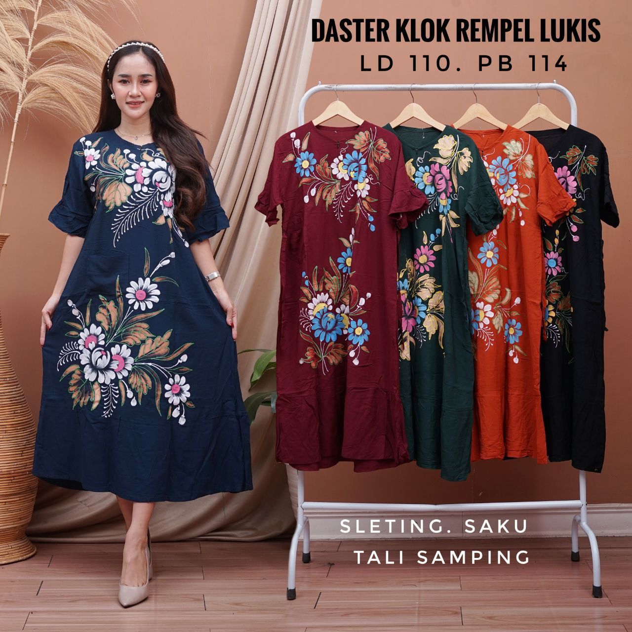 Daster klok rempel lukis pekalongan,untuk keterangan ukuran ada bada gambarnya ya kak?