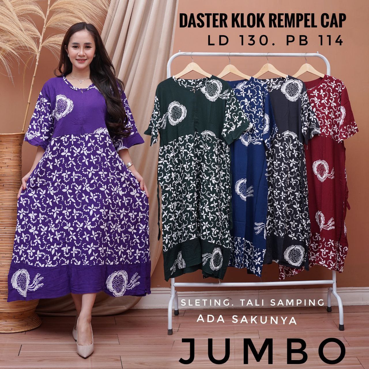 Daster jumbo klok rempel cap pekalongan,untuk keterangan ukuran ada bada gambarnya ya kak?