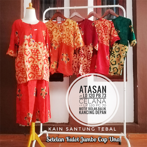 Setelan kulot jumbo cap una pekalongan,untuk keterangan ukuran ada bada gambarnya ya kak?